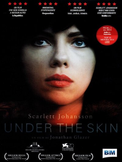 Una creatura aliena giunta sulla Terra s’impossessa del corpo di una donna, prendendo le sembianze di una ragazza attraente, Laura (Scarlett Johansson). L’aliena comincia a percorrere le strade della Scozia seducendo uomini solitari e conducendoli nell’oscuro magma che si apre dietro la porta di casa. Laura sembra non avere alcuna reazione emotiva ma, a poco a poco, si instilla in lei un’inquietudine identitaria, che evolve in umana fragilità. A metà fra il road movie e la fantascienza, Under the Skin è una riflessione sul mondo, sull’esistenza e la solitudine umane attraverso il disumano sguardo di un’aliena