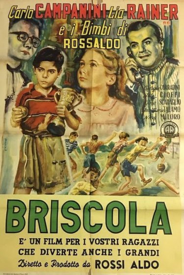Diretto da Aldo Rossi. è un film drammatico italiano del 1951 diretto da Aldo Rossi e interpretato da Carlo Campanini , Annamaria Talamo e Giorgi Corradini . [1] Prende il nome dal gioco di carte italiano Briscola .Appaiono diversi calciatori italiani come loro stessi nel film. Trama Allo stadio Luigi Ferraris di Genova diversi ragazzi, tra cui spiccano Briscola e Pertica, sono abbastanza bravi a giocare a calcio, ma le loro condizioni sono molto critiche, palloni di stracci, scarpe rotte o mancanti, vestiti consumati allo stremo. Però sono spensierati e giocano come possono in strada o nel greto del Bisagno. La piccola Lillina, figlia di un industriale e orfana di madre, vive allevata da un tutore e da altri cari servitori di casa, tra i quali spicca il buon maggiordomo Tonio. Dall\\\\\\\'alto del muro di cinta della sua villa osserva i poveri ragazzi e nonostante riceva scherni, prova per tutti loro un\\\\\\\'estrema simpatia. Un giorno questi, sfidati da un ragazzo che frequenta l\\\\\\\'\\\\\\\"Istituto\\\\\\\", cioè il Liceo Ginnasio Andrea D\\\\\\\'Oria, accettano di giocare contro una vera e propria squadra di studenti, ma non sono in condizione, senza scarpe il gioco finisce in rissa. Lillina lo viene a sapere e vorrebbe aiutarli. A loro insaputa, cerca di chiedere a suo padre, tramite il maggiordomo, di fare una donazione, ma invece verrà tassata dai suoi servi. Il maggiordomo dovrà mettersi in contatto. Tuttavia si vergogna di entrare in confidenza, viene deriso e scacciato dal gruppo orgoglioso. Per raccogliere fondi, i nostri amici allestiscono un palco da cui si esibiscono in uno spettacolo, ma un temporale mette in fuga il pubblico squattrinato prima che riescano a raccogliere offerte. In seguito Tonio, dopo aver assistito a una partita della Sampdoria, intrufolandosi negli spogliatoi riesce a convincere Briscola di avere conoscenza e dimestichezza con i giocatori, che anzi lo prendono per matto. Riuscirà così a conquistare la fiducia dei ragazzi e potrà donare una somma e accompagnarli ad acquistare attrezzature preziose, tute, calze, scarpe, cose mai viste prima! La squadra potrà ora iscriversi al campionato locale, e tra una partita e l\\\\\\\'altra c\\\\\\\'è una finale con le prime sfidanti dell\\\\\\\'\\\\\\\"Istituto\\\\\\\" che si svolge a Cornigliano. Succede però che Briscola in eccesso di lei faccia cadere Lillina battendole la testa. Poco prima dell\\\\\\\'inizio della finale, il maggiordomo disperato confessa ai ragazzi di non essere uno sportivo e di fare sul serio per colpa della Briscola Lillina. I ragazzi si fanno prendere dal panico, il gioco inizia, ma prevale lo sconforto. Nella ripresa arriva la notizia che Lillina è fuori pericolo, anzi pretende addirittura una telecronaca della partita. Quindi vittoria e lieto fine al capezzale di Lillina con il papà che diventerà presidente della squadra