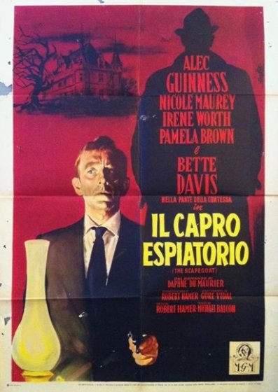 TELECINEMA dal Film in Pellicola 16mm, BN. Un film di Robert Hamer. Con Bette Davis, Nicole Maurey, Alec Guinness, Jerome Worth Titolo originale The Scapegoat. Drammatico, b/n durata 92 min. - Gran Bretagna 1959 TRAMA: Per caso si incontrano due uomini assolutamente identici, l\\\'inglese Barrat e il nobile francese decaduto De Gue. Barrat si ritrova, dopo una lunga dormita, con addosso i vestiti del suo sosia, di cui è costretto a prendere il posto nella intricata vita familiare. L\\\'arrivo di un\\\'eredità spinge De Gue a ricomparire e a rivendicare la sua identità, ma Barrat ora non gliela vuole più concedere. Nella lite che sorge parte un colpo di pistola e uno dei due rimane ucciso: ma è Barrat quello che sopravvive e va a prendere possesso dell\\\'eredità.